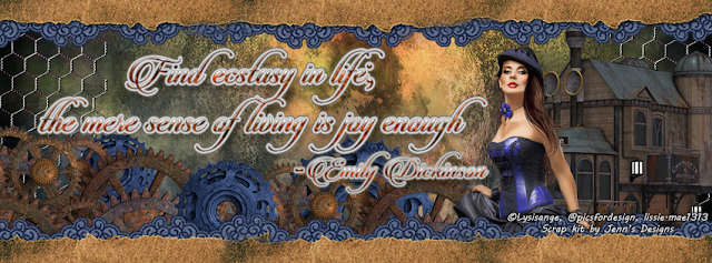 Introducing Midnight Blue's by Jenn's Designs. This gorgeous scrap kit comes with 108 elements and 10 papers and will bring your steampunk tags alive. You can find it at the following stores: Pics For Design, Designer Scraps, and Scraps & Company.